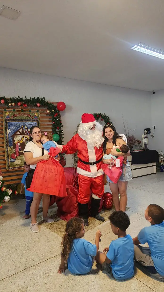 A programação contou com recepção às famílias, brinquedos, distribuição de picolés, bolo gelado, biscoitos, pipoca e refrigerantes, criando um ambiente festivo que marcou as comemorações natalinas para as comunidades atendidas.