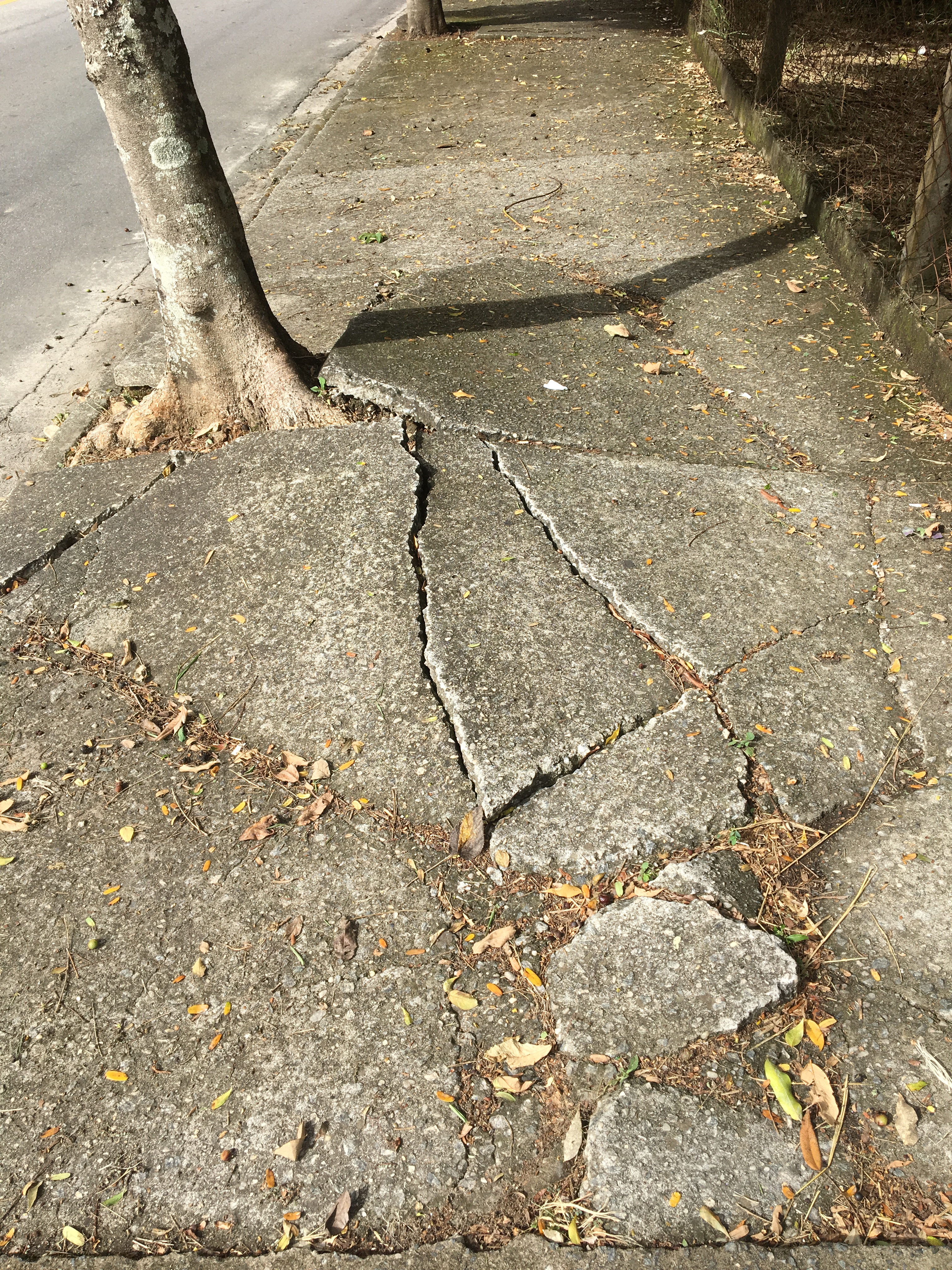 Calçada-UrbanovaNa Avenida Ironman Victor Garrido, as árvores desnivelaram a calçada próximo ao Pão de Açúcar, demandando mais a atenção de quem caminha pelo local. Outro problema registrado entre os meses de maio e junho foi a reserva ambiental Bosque Jair Veneziani. A flora cobriu todo o muro e invadiu a calçada, impossibilitando a passagem de pedestres e favorecendo o aparecimento de animais.  Não só neste local, mas também outros pontos do bairro há grande volume de mato obstruindo as travessias, como mapeado pela Revista em trechos da Avenida Shishima Hifumi e Avenida Papa João Paulo II.
