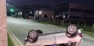 Carro capota na avenida Linneu de Moura durante a madrugada