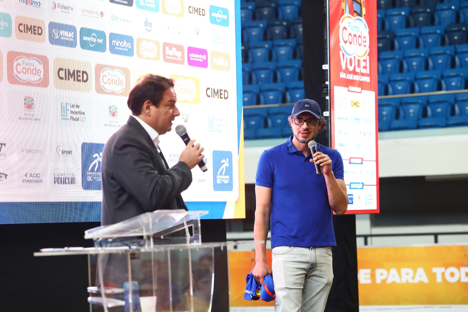 No evento subiram ao palco para falar com o público presente, Anderson Farias prefeito de São José dos Campos, Mário Muniz presidente da Farma Conde, Rodrigo Moraes, o presidente da equipe Farma Conde Vôlei São José, e a Kátia Riêra secretária de Esportes e Qualidade de Vida. Todos ressaltaram a importância do projeto para a cidade e o desejo em um sucesso ainda maior da equipe.