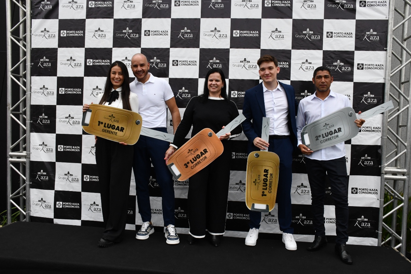 A imobiliária Grupo Kaza realizou na manhã desta quinta-feira (14) uma cerimônia de premiação em sua unidade do bairro Urbanova, em São José dos Campos, para reconhecer o desempenho de seus corretores e gerentes mais destacados nos últimos meses, entregando veículos 0 km aos vencedores de cada categoria.