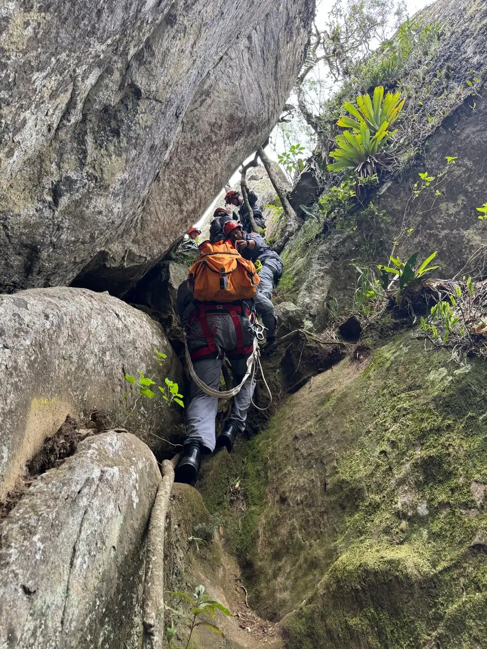A ação contou com o apoio do Helicóptero Águia. Técnicas específicas de resgate em paredões rochosos também foram empregadas, procedimento comum em regiões com acesso restrito.
