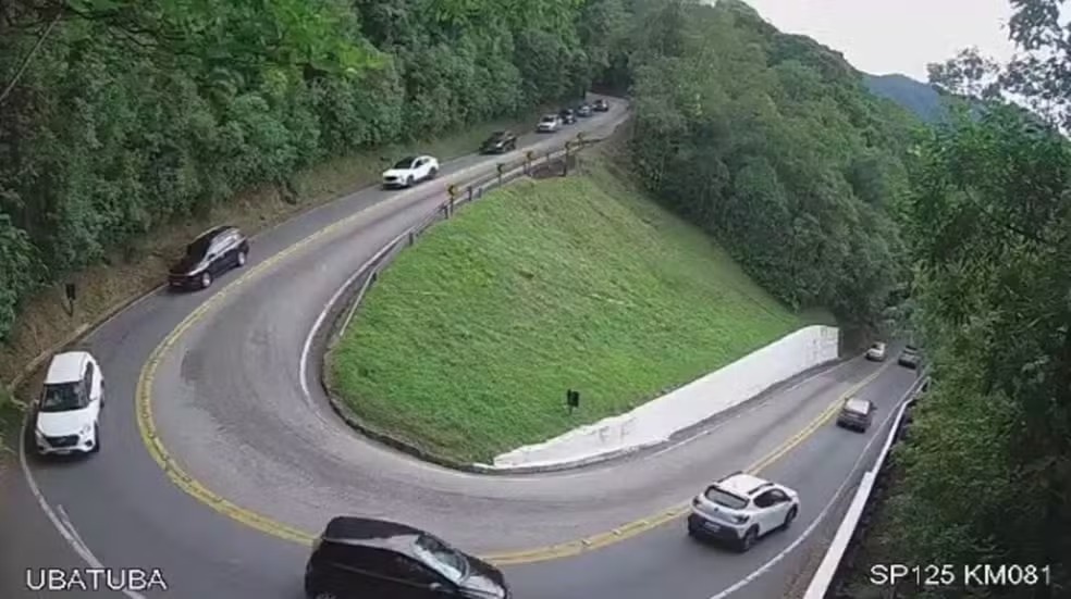 Na rodovia Oswaldo Cruz, o fluxo também é alto no trecho de serra, principalmente na descida para Ubatuba. O aumento reflete a maior procura pelo Litoral Norte, o que pode impactar o tempo de deslocamento ao longo do dia.