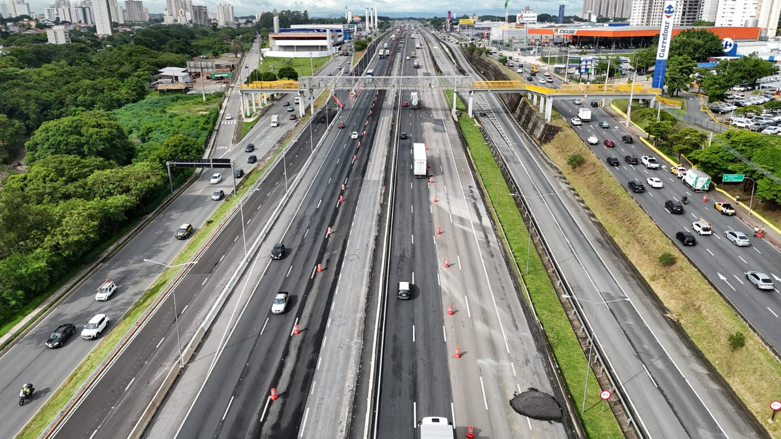 Outra mudança ocorre próximo à passarela do Carrefour, no km 152,1. A entrada provisória para a pista expressa nesse ponto foi desativada. Agora, o acesso deve ser feito pela nova via marginal, com retorno à pista expressa no km 156,5.