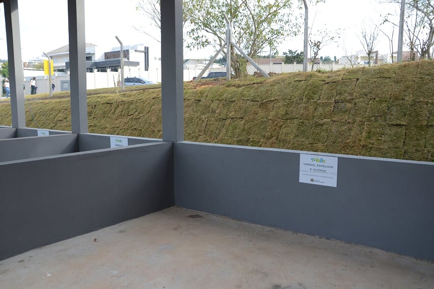 A construção contempla soluções ambientais adotadas nos Eco-PEVs do distrito de São Francisco Xavier e do Jardim Santa Luzia, na região sudeste. Entre elas, paredes de solo-cimento, sistemas de captação de água de chuva, telhado em material reciclado e tratamento sustentável de águas residuais. A unidade também terá outras novidades como passeio de concreto permeável, jardim de chuva (sistema de microdrenagem de águas pluviais)pomar de espécies nativas e espaço para atividades de educação ambiental. O PEV aqui é um é uma prestação de serviço para a comunidade. Porque todo mundo tem um material a descartar, um sofá velho, tem aquelas duas ou três latas de resíduos da construção civil para destinar, lâmpada, óleo então são todos os materiais que são recepcionados aqui no PEV. Além de ser uma área com inovações de um modelo construtivo. Todos podem vir conhecer, temos mais de 12 itens pra pessoa conhecer o que é uma construção verde e sustentável”, disse o Secretário de Planejamento, Marcelo Manara.