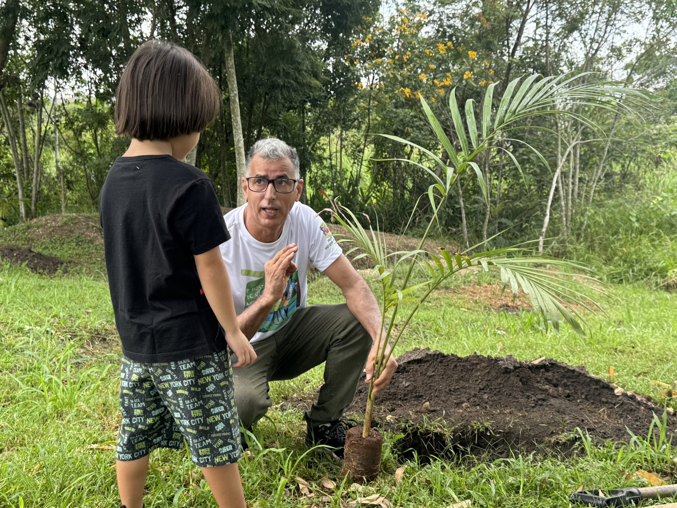 Na manhã desta quarta-feira (20) cerca de 30 pessoas participaram do plantio de 10 mudas de Palmeira Juçara no Parque Ribeirão Vermelho, no Urbanova.