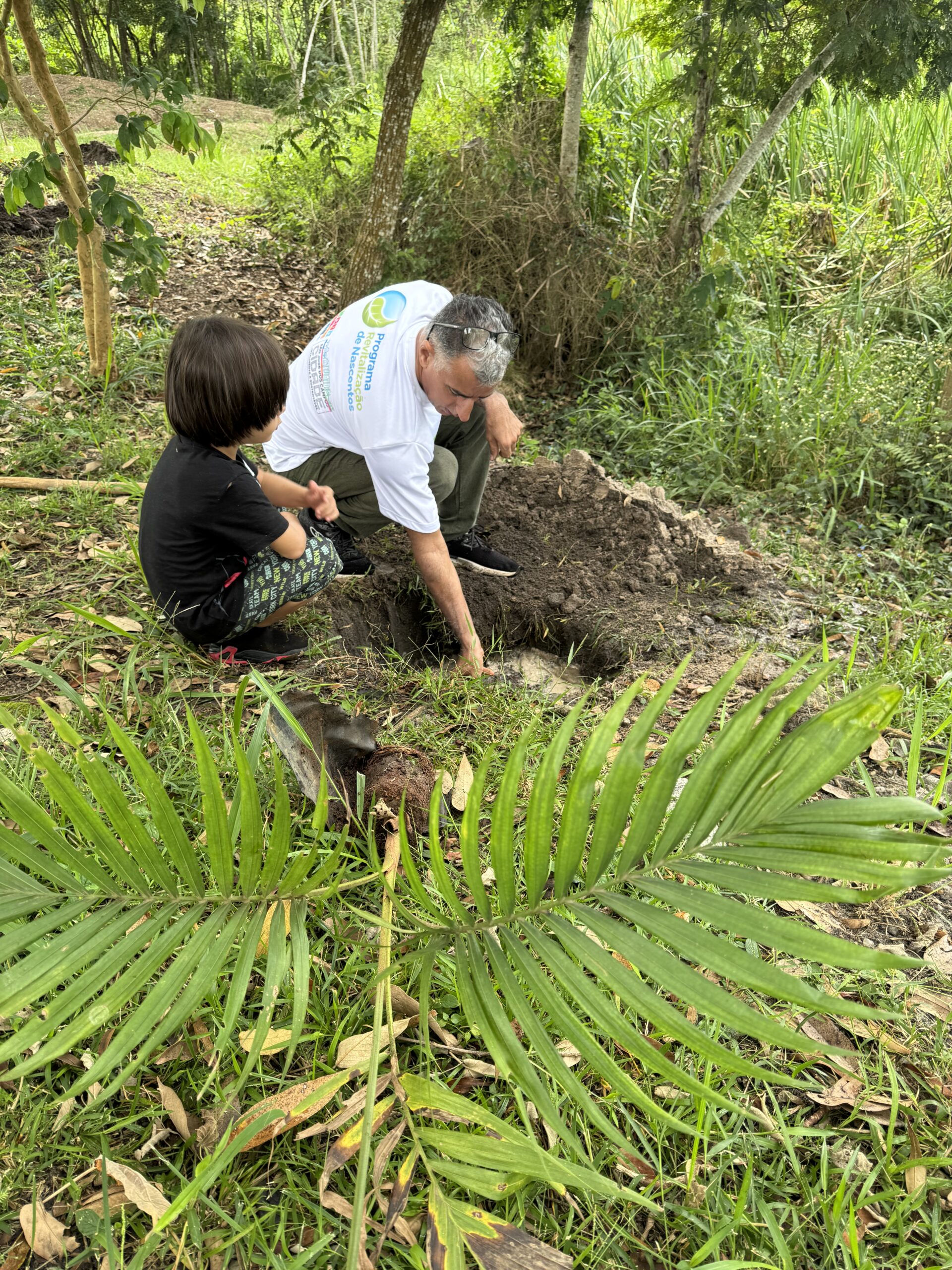 Plantio de palmeiras juçaras em área verde da nascente Jardim Mariana