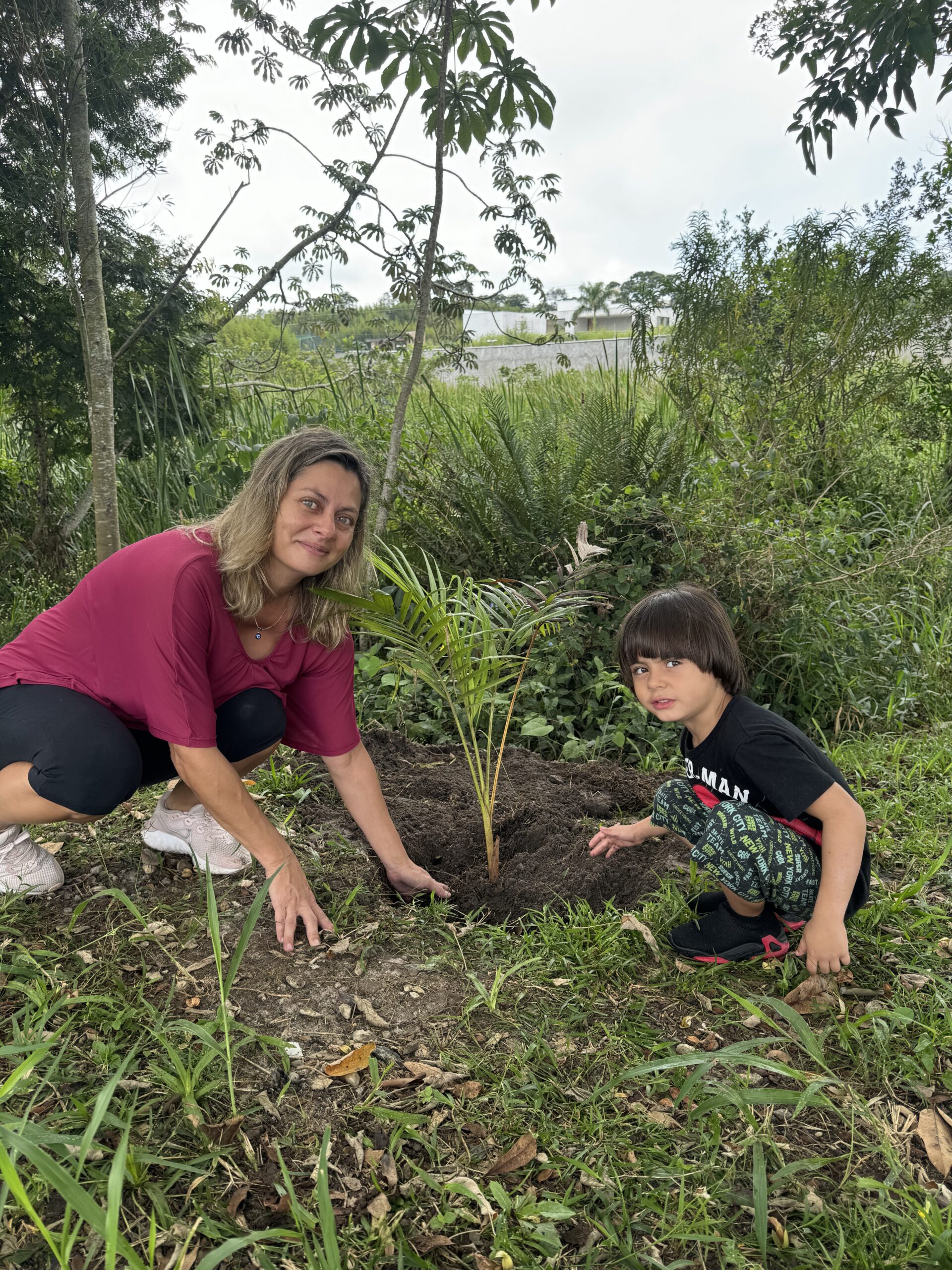 Plantio de palmeiras juçaras junto à nascente do Jardim Satélite