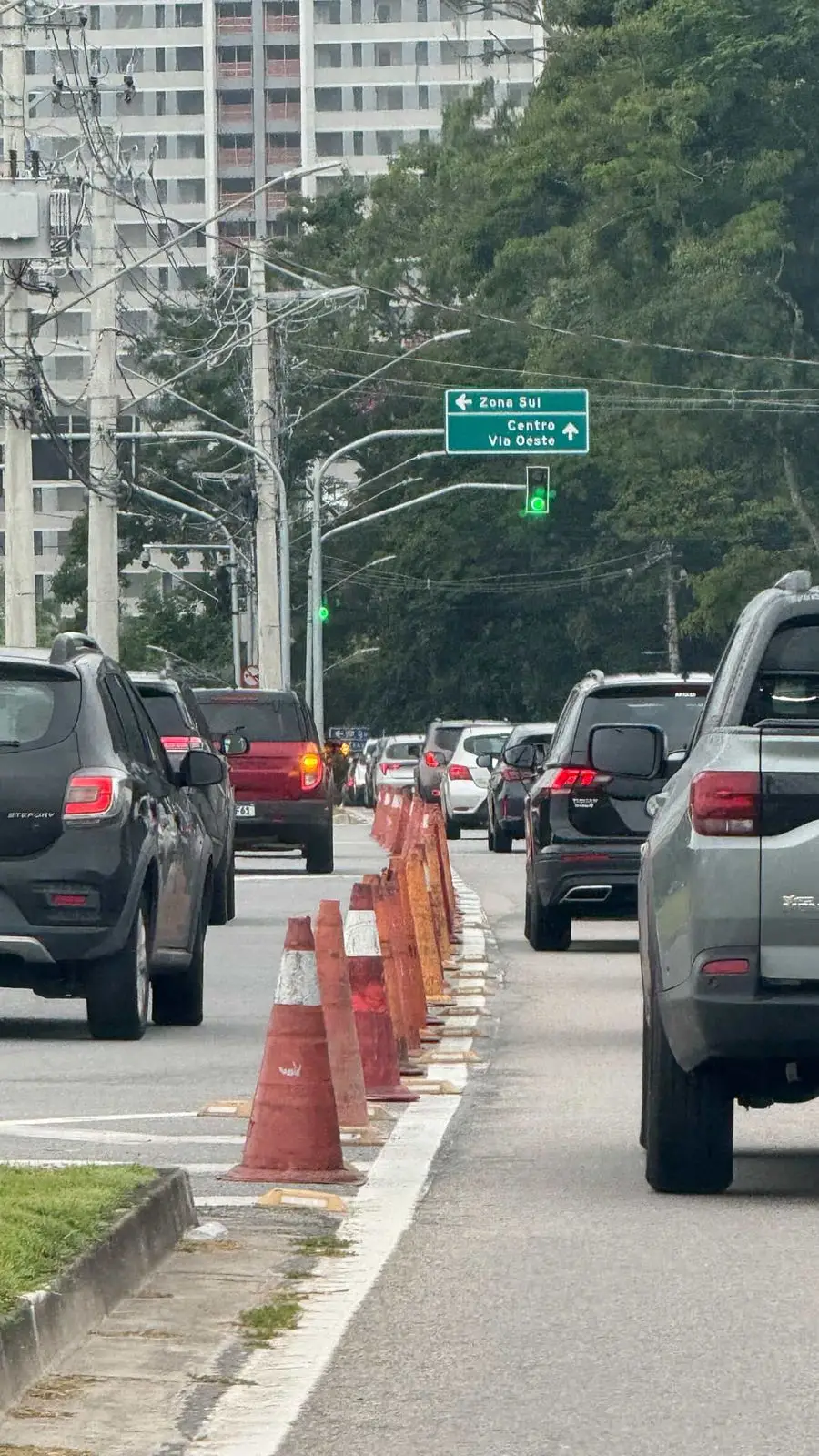 “Hoje, os agentes de trânsito estavam na rotatória do Vivale com cones. O tráfego estava carregado, mas fluía sem ficar parado. A faixa central seguiu em movimento enquanto o semáforo permanecia aberto”.