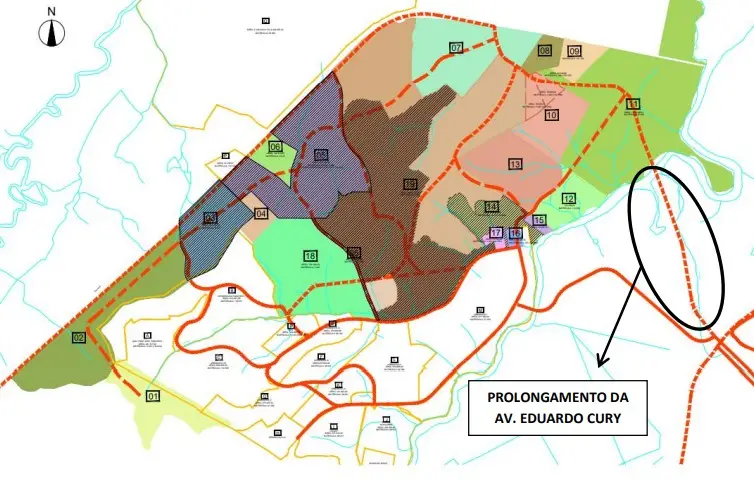 Com o avanço dos projetos de loteamentos na região, a Prefeitura estabeleceu um modelo de divisão de custos da futura obra entre proprietários das áreas de expansão do Urbanova. O cálculo foi feito com base na área loteável de cada gleba, definindo a participação proporcional de cada empreendedor no financiamento da nova via.