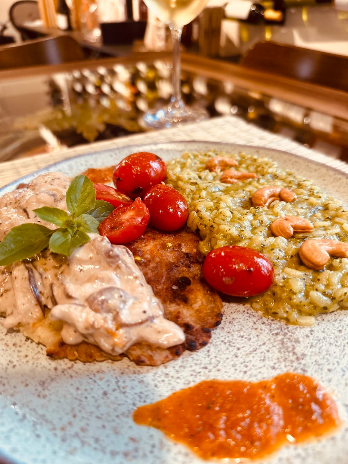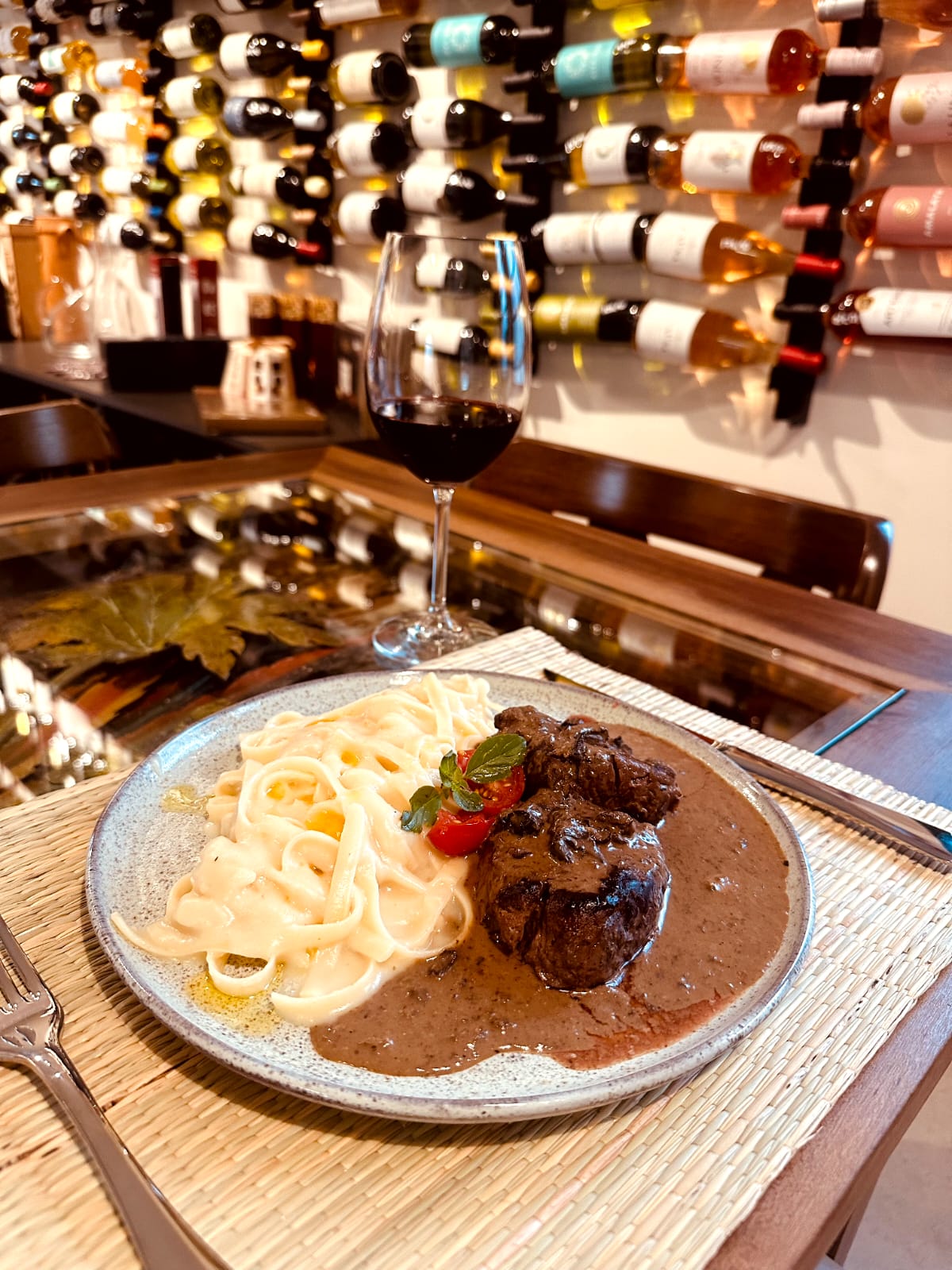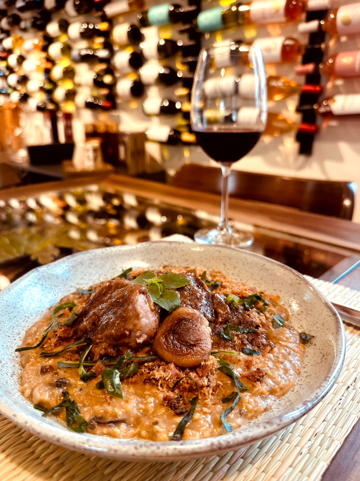 O local destaca-se pelo ambiente aconchegante, decorado com mesas rústicas que complementam seu charme. Situado dentro da Loja Decanter, uma enoteca que oferece mais de 600 rótulos de vinho.
