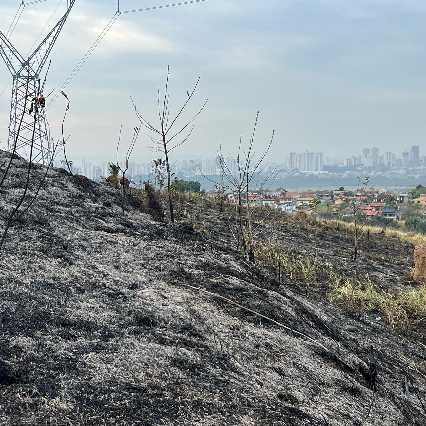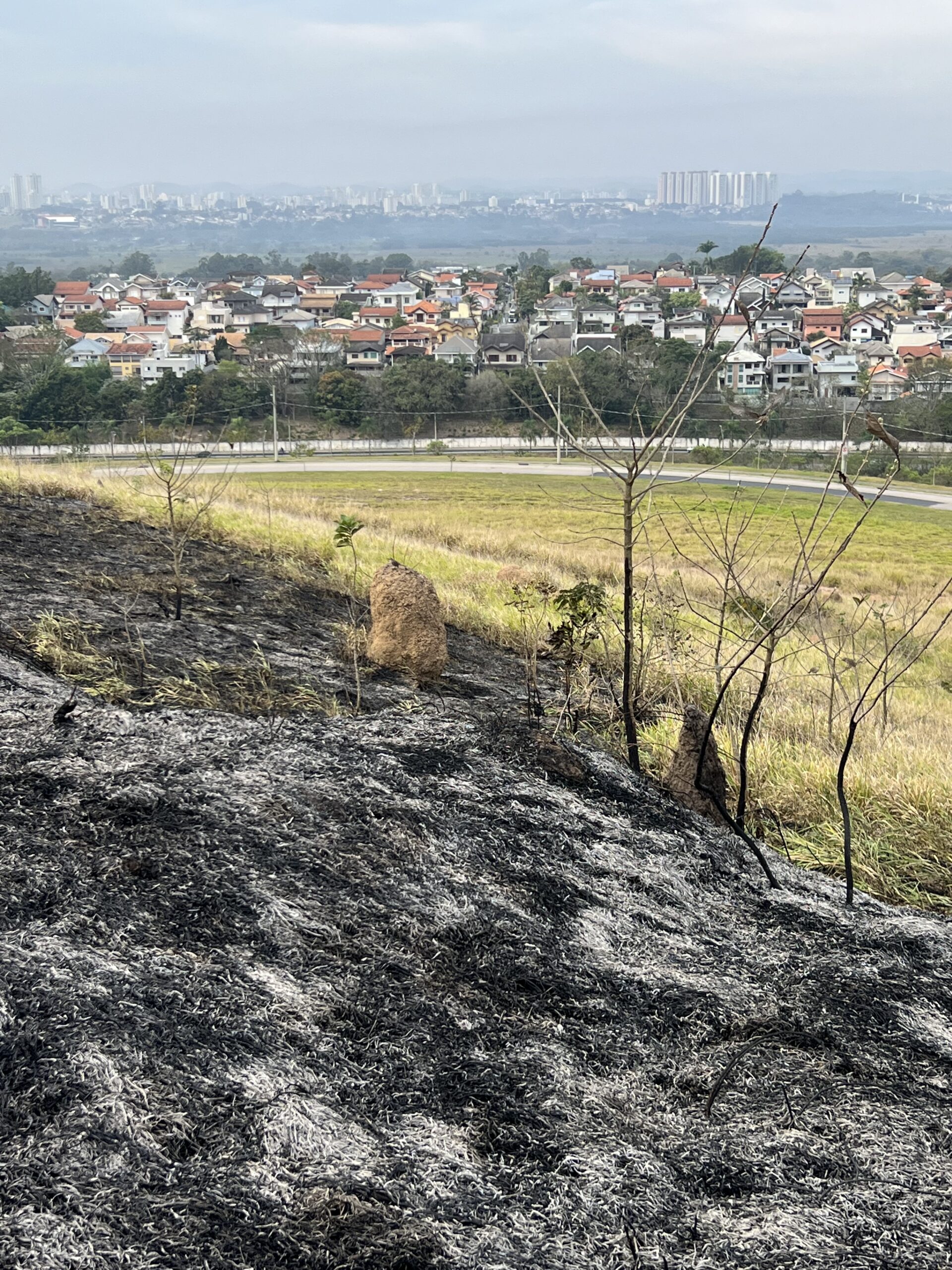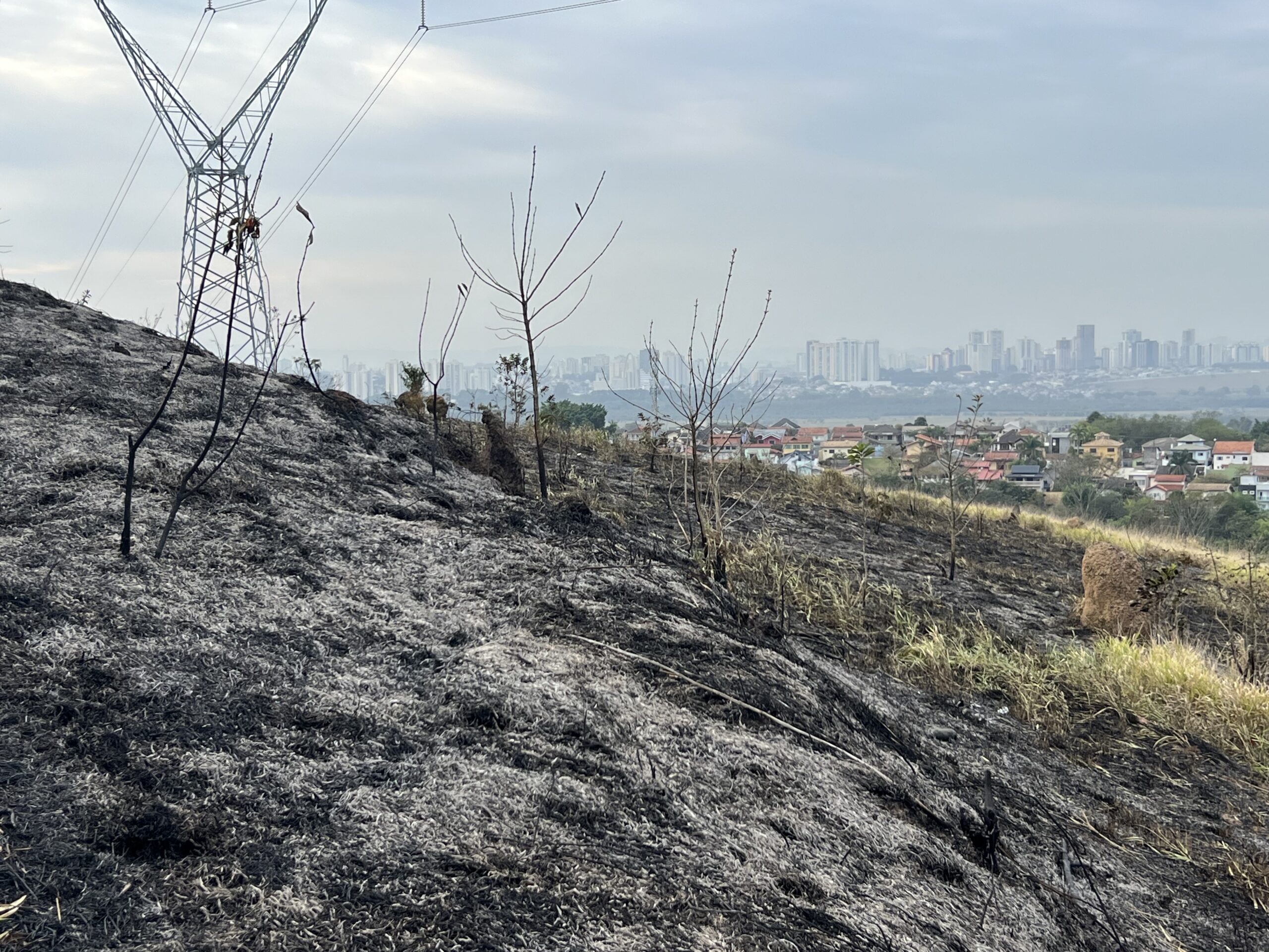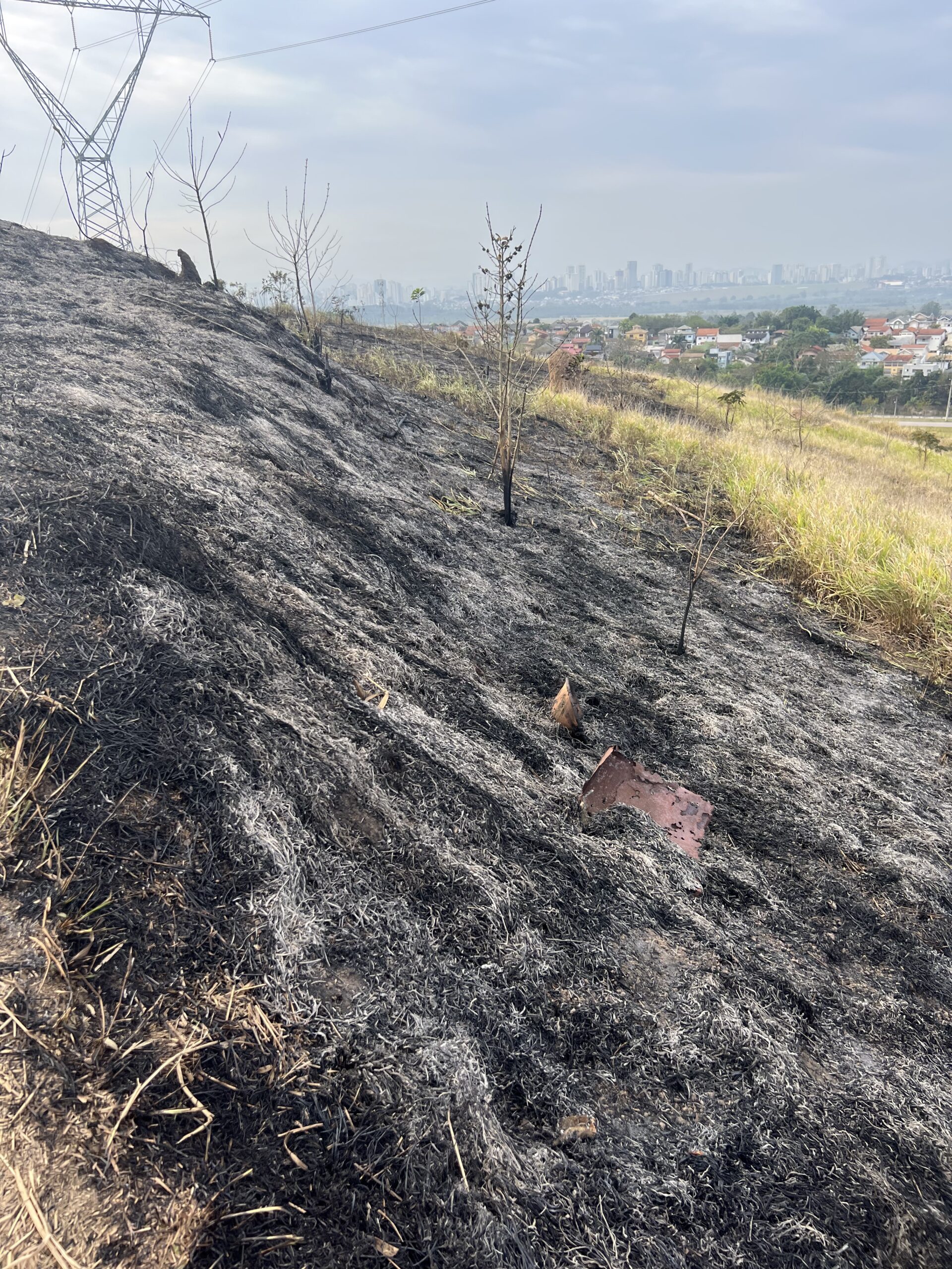 Registramos na manhã desta quarta-feira (17) algumas imagens da área atingida pelo incêndio ontem na região do Alphaville/Urbanova.