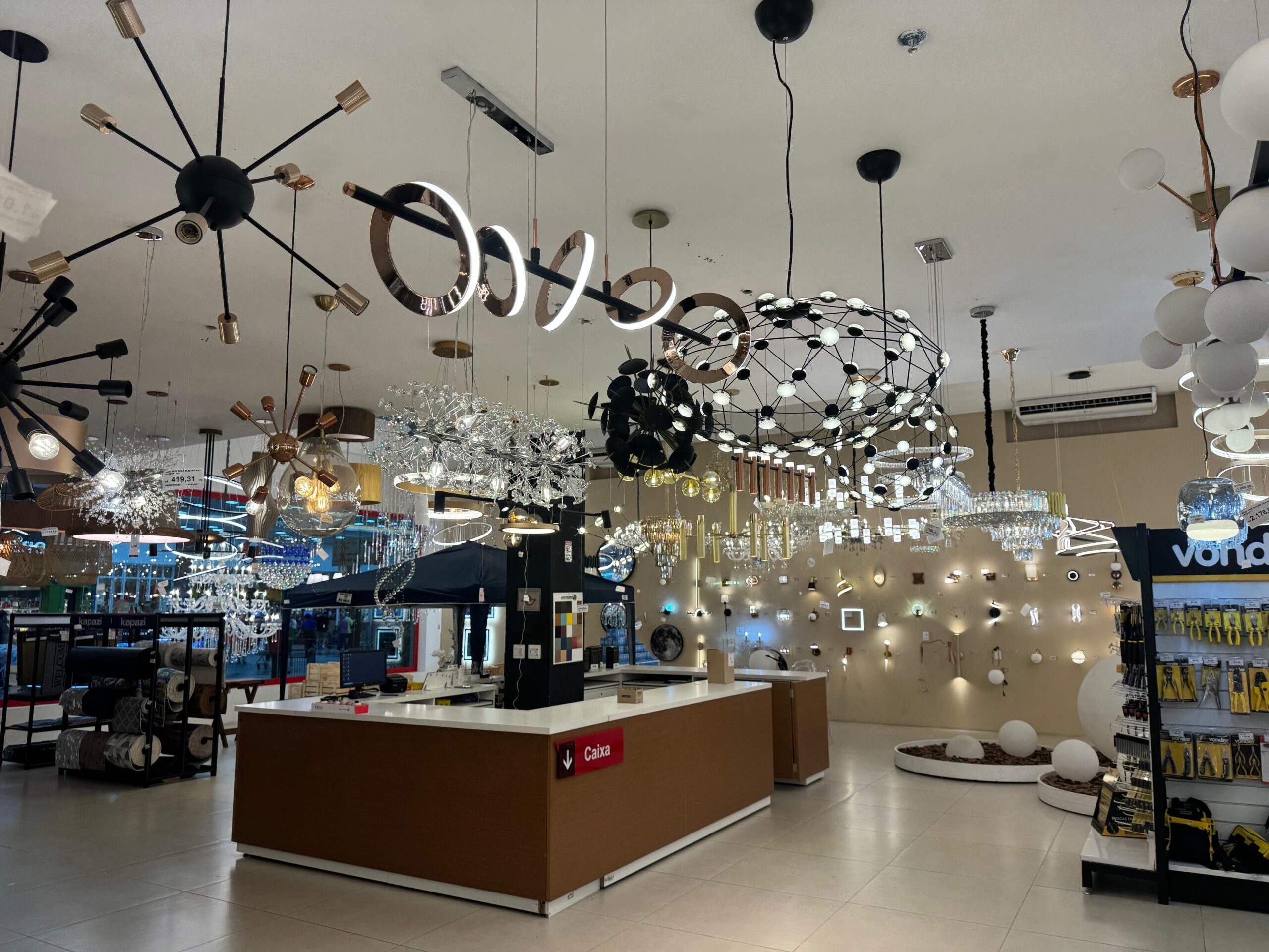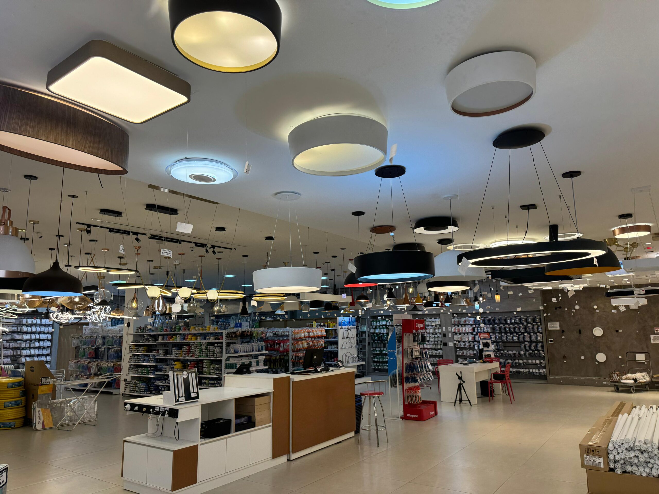 Parte de uma rede com 8 lojas, a Lina Iluminação oferece uma ampla variedade de produtos em 800m² dedicados a um showroom completo, com centenas de produtos a pronta entrega